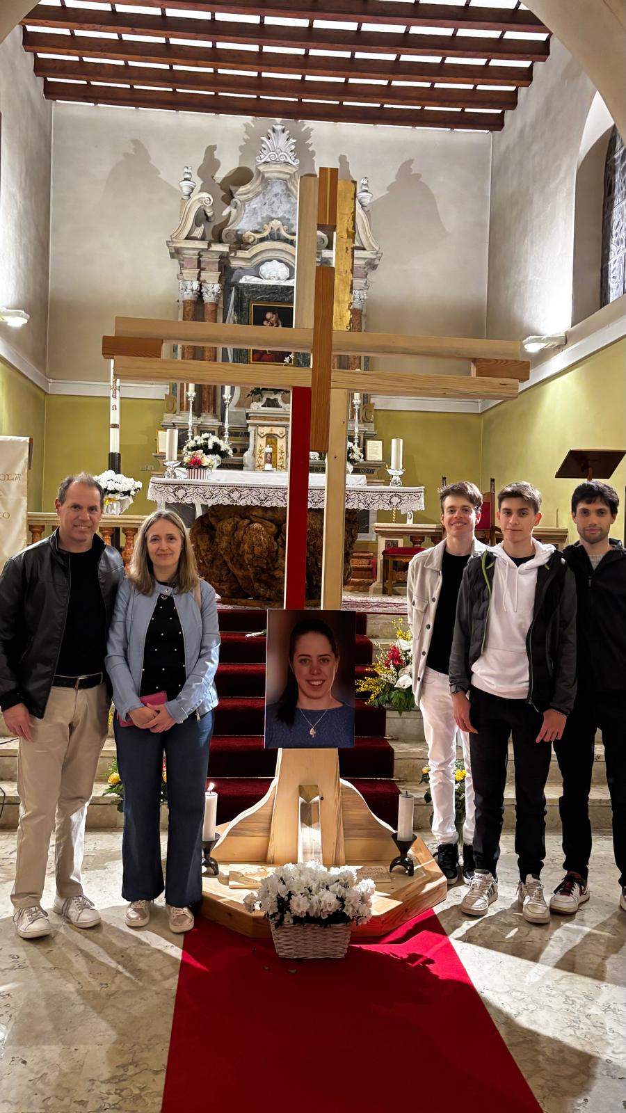 Durante quest’anno del Giubileo della Speranza, la diocesi di Trento, ha voluto far girare per i vari decanati del Trentino, la Croce simbolo del Giubileo. Nella prima parte del mese di maggio, ha fatto tappa al Santuario della Madonna dell’Aiuto a Segonzano in val di Cembra. Su iniziativa delle varie parrocchie della valle si sono alternati momenti di preghiera e di adorazione davanti alla Croce. E’ stato chiesto anche ai famigliari di Sara di fare un momento di meditazione, magari utilizzando della frasi scritte da Lei. Questo momento di preghiera, si è svolto con un canto iniziale alla Madonna, la lettura di una frase di Sara, seguita da una breve riflessione e dalla recita di un mistero della Luce ogni frase, un Padre Nostro, tre Ave Maria, un Gloria, ed un canto. Il momento di adorazione è stato partecipato da molte persone.