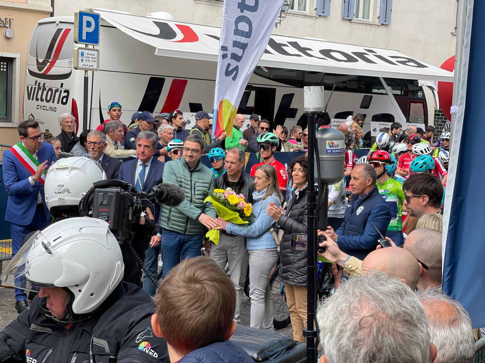 22 aprile 2025 Mezzolombardo: il Tour of the Alps, omaggia Sara Piffer alla partenza e ricorda tutte le vittime strada del ciclismo