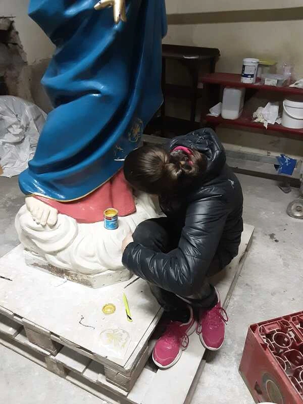 Nell’autunno del 2022, Sara si è impegnata con grande passione nel restauro della statua della Madonna Ausiliatrice, alla quale era profondamente devota.