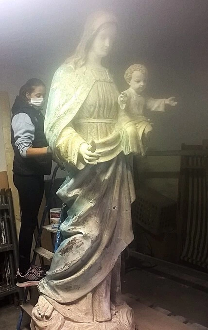Questo progetto, che sentiva come una missione personale, nasceva anche da una promessa fatta alla Madonna, che Sara ha voluto mantenere con tutto il cuore. Nonostante gli impegni scolastici e sportivi, ha dedicato molto del suo tempo libero al lavoro di recupero. La statua, realizzata in gesso e gravemente deteriorata, presentava numerosi danni e parti mancanti.